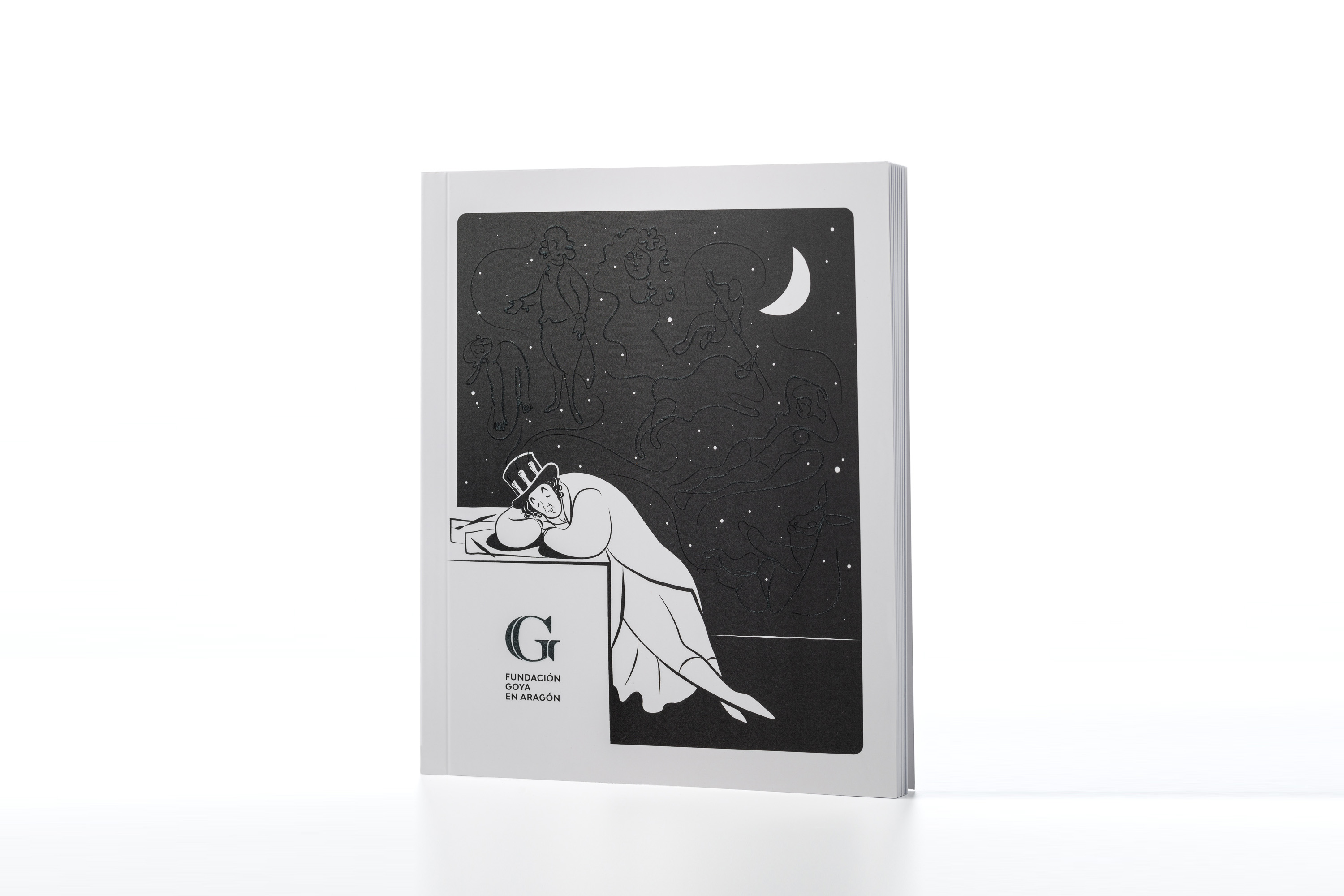 Cuaderno de tapa blanda con impresión en tinta serigráfica termocromática. Ilustración de la tapa inspirada en la estampa El sueño de la razón produce mosntruos (Caprichos, 43). Cambia la imagen de la portada con la luz.