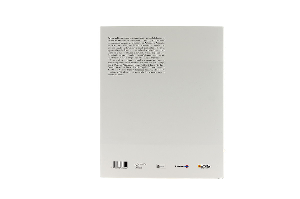 Catálogo de la exposición Goya e Italia, comisariada por Joan Sureda, organizada por la Fundacón Goya en Aragón y celebrada en el Museo de Zaragoza, entre el 1 de junio y el 15 de septiembre de 2008. Zaragoza