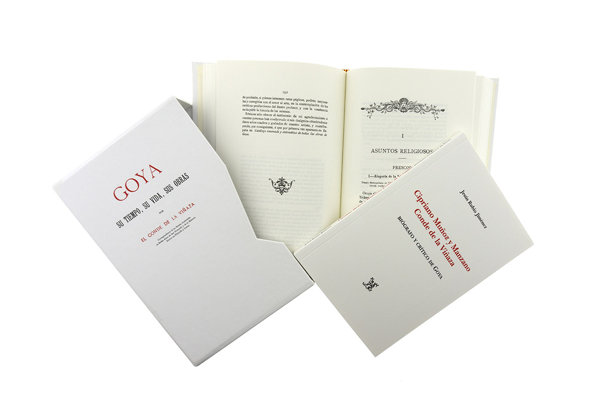 La Fundación Goya en Aragón, en su objetivo de conformar una bibliografía que actualice los escritos que han sido dedicados a Goya desde el siglo XIX, ha seleccionado una de las monografías sobre la vida y obra de Francisco de Goya cuyo contenido en la actualidad es de difícil acceso. Un siglo después de su publicación se edita el facsímil Goya. Su tiempo, su vida, sus obras, escrita por Cipriano Muñoz y Manzano, conde de la Viñaza (1862-1933).